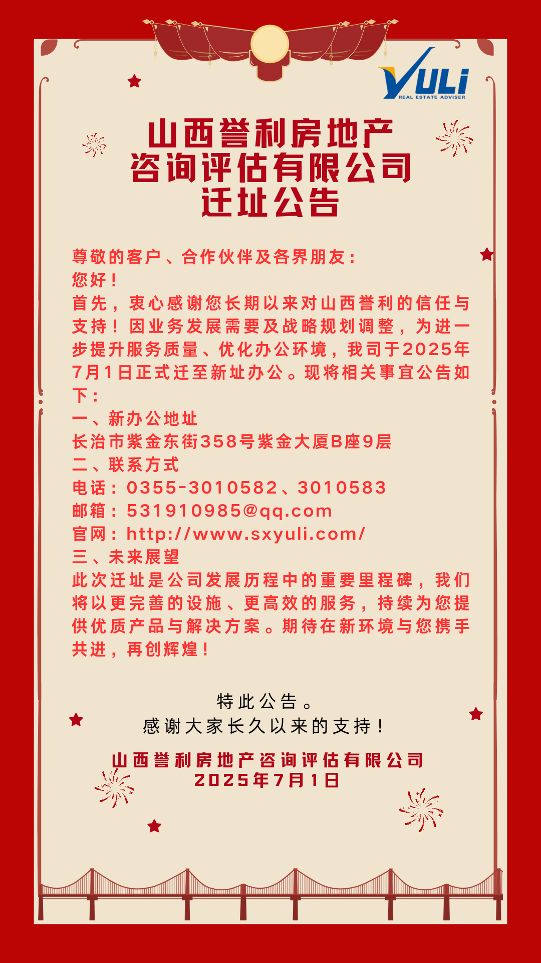 ABOUT US山西誉利房地产咨询评估有限公司,前身为长治市房地产价格评估事务所(简称市评估所),市评估所成立于1995年,是原长治市房地产管理局直属事业单位,代市局行使房地产评估技术管理、指导职能,是长治市批准成立的第一家房地产评估机构。2001年12月,按照国务院关于经济鉴证类中介机构与政府部门脱钩改制的文件要求,市评估...